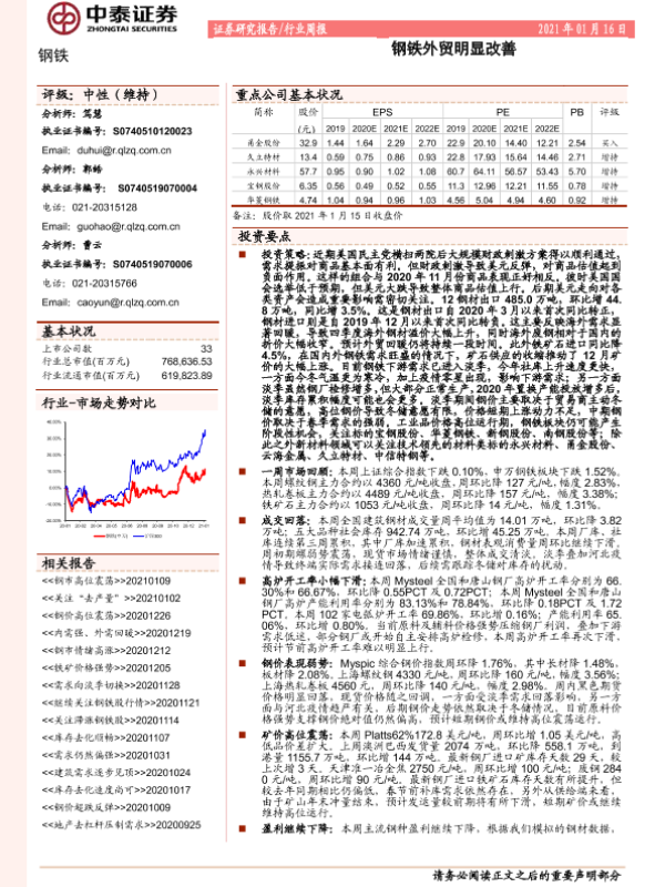 【中泰证券】【20210116】20210116-中泰证券-钢铁行业周报:钢铁外贸明显改善-13页