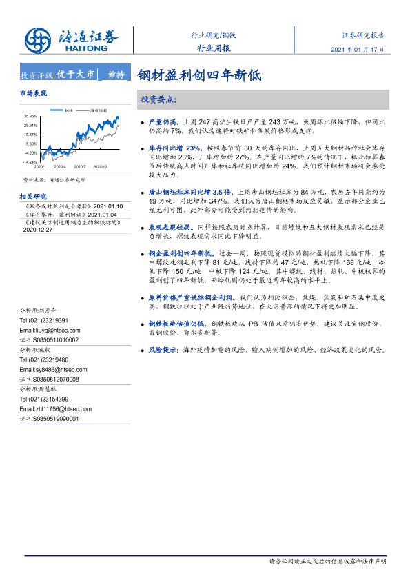 【海通证券】【20210117】20210117-海通证券-钢铁行业周报:钢材盈利创四年新低-13页
