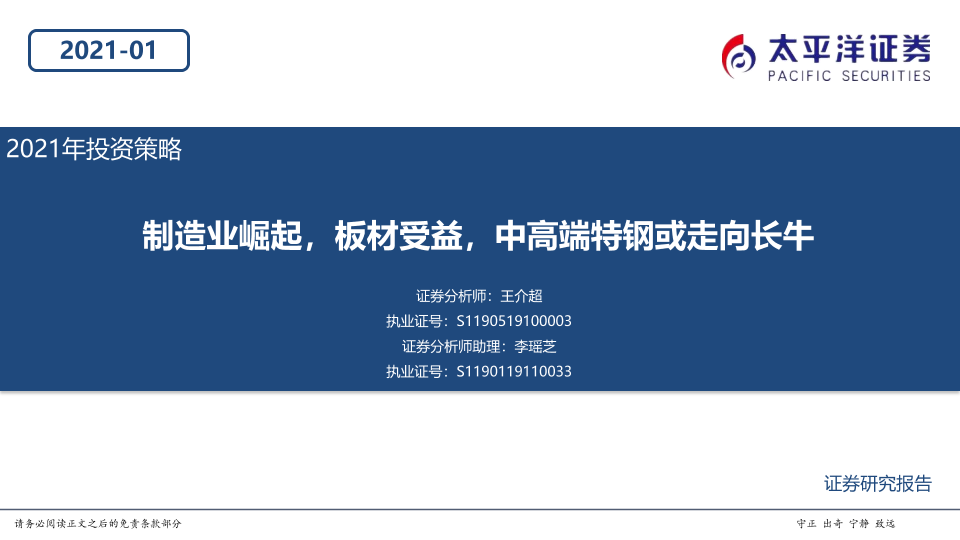 【太平洋证券】【202101】钢铁行业2021年投资策略:制造业崛起,板材受益,中高端特钢或走向长牛-67页