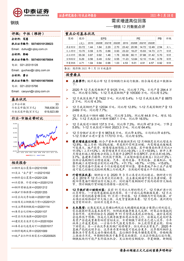 【中泰证券】【20210118】钢铁12月数据点评:需求增速高位回落-5页