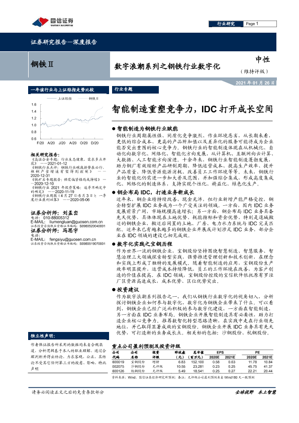 【国信证券】【20210126】数字浪潮系列之钢铁行业数字化:智能制造重塑竞争力,IDC打开成长空间-21页