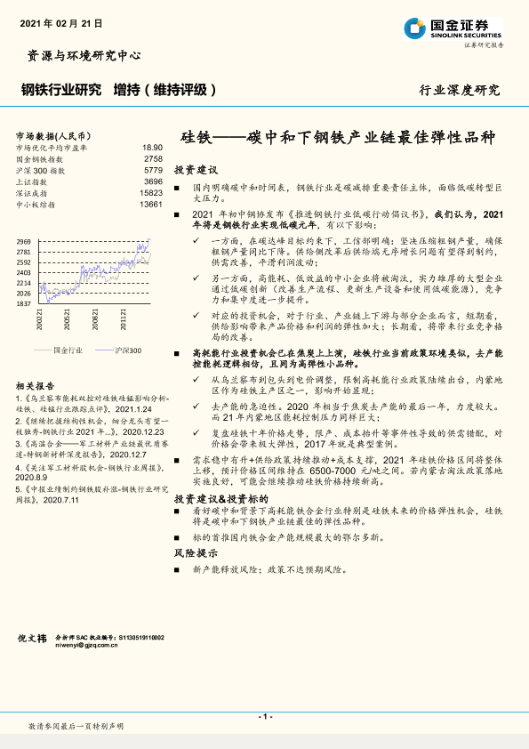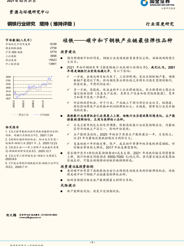 【国金证券】【20210221】20210221-国金证券-钢铁行业研究:硅铁——碳中和下钢铁产业链最佳弹性品种-18页