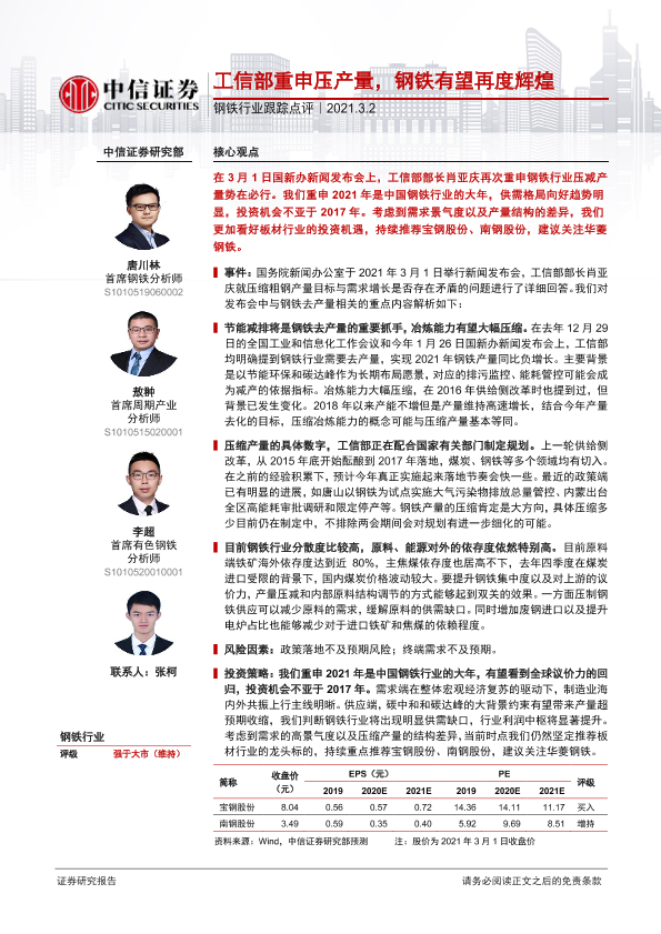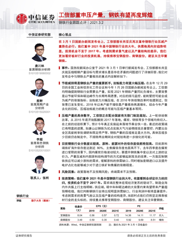【中信证券】【20210302】钢铁行业跟踪点评:工信部重申压产量,钢铁有望再度辉煌-2页