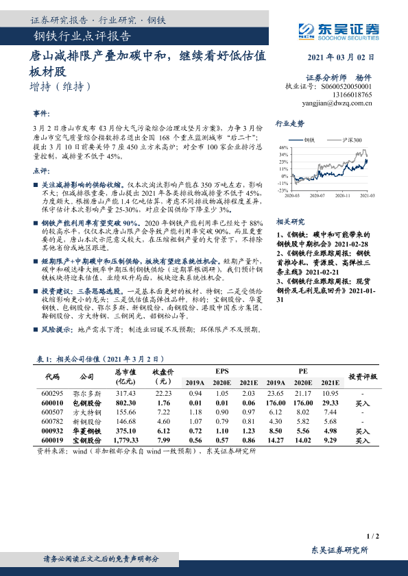 【东吴证券】【20210302】钢铁行业点评报告:唐山减排限产叠加碳中和,继续看好低估值板材股-2页