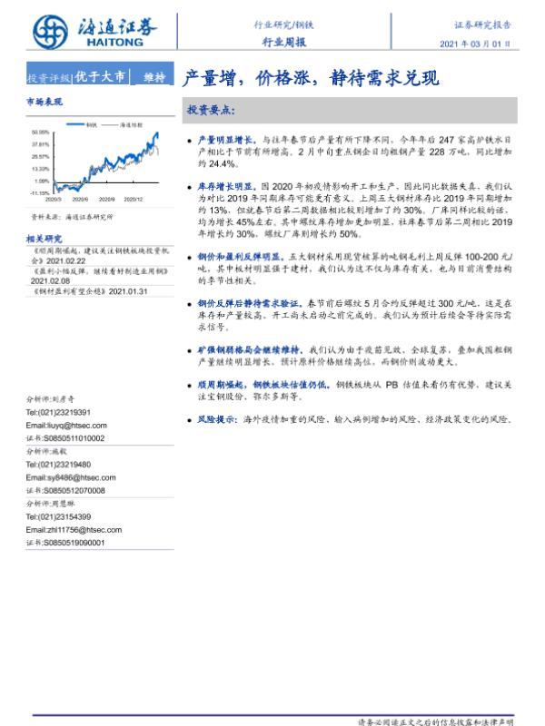 【海通证券】【20210301】20210301-海通证券-钢铁行业周报:产量增,价格涨,静待需求兑现-13页