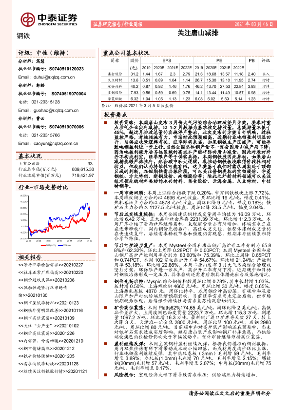【中泰证券】【20210306】20210306-中泰证券-钢铁行业周报:关注唐山减排-12页