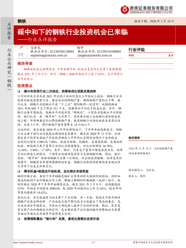 【浙商证券】【20210310】碳中和下的钢铁行业投资机会已来临-3页