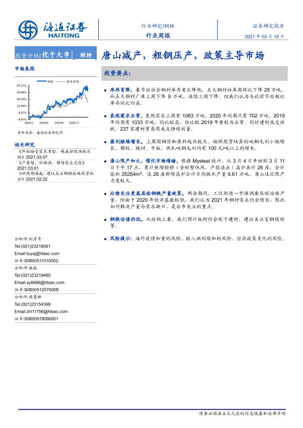 【海通证券】【20210315】20210315-海通证券-钢铁行业周报:唐山减产,粗钢压产,政策主导市场-13页