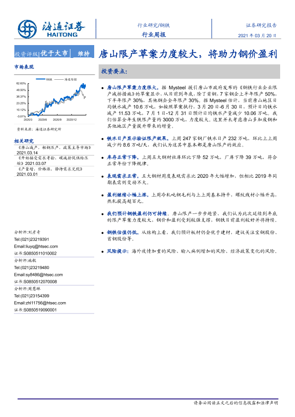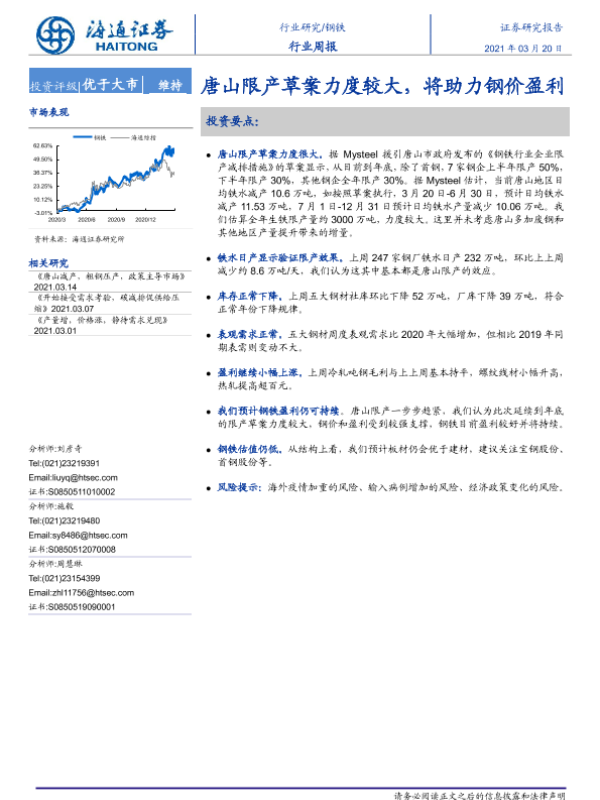 【海通证券】【20210320】20210320-海通证券-钢铁行业周报:唐山限产草案力度较大,将助力钢价盈利-13页