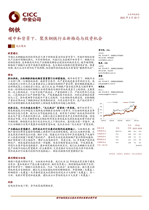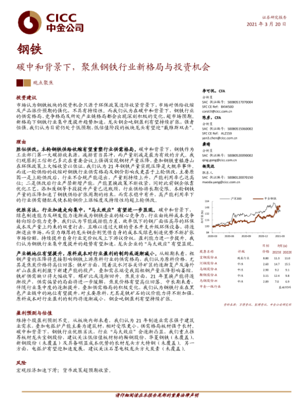 【中金公司】【20210320】钢铁:碳中和背景下,聚焦钢铁行业新格局与投资机会-29页