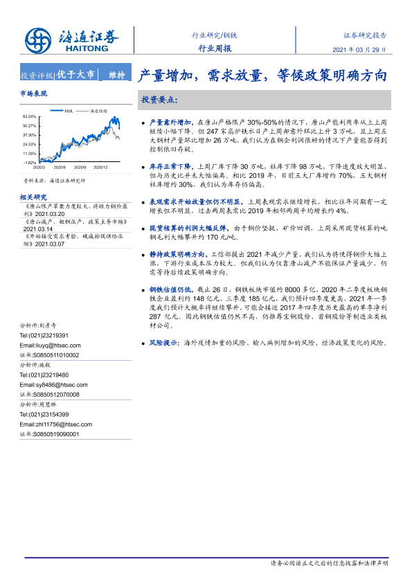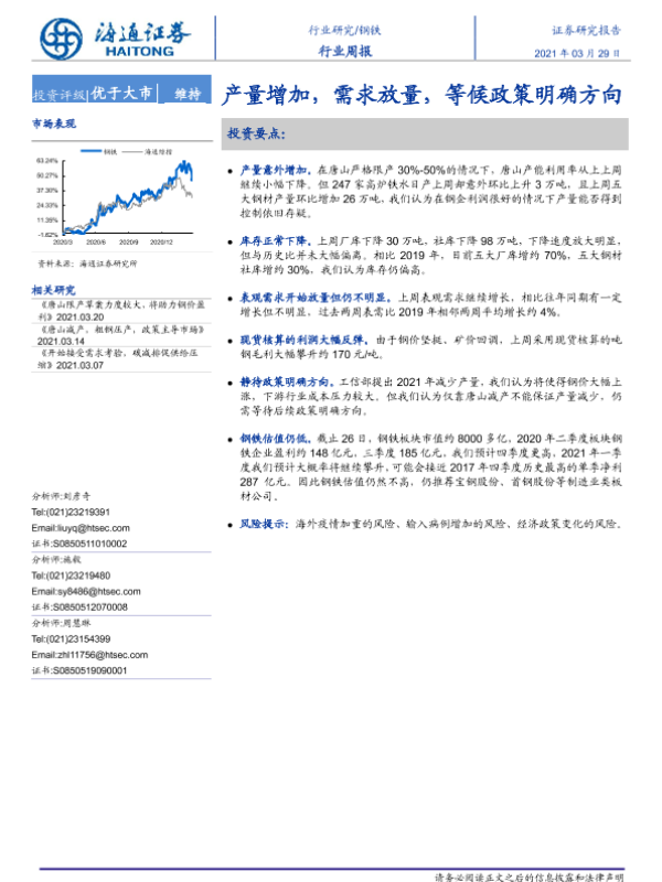 【海通证券】【20210329】20210329-海通证券-钢铁行业周报:产量增加,需求放量,等候政策明确方向-13页