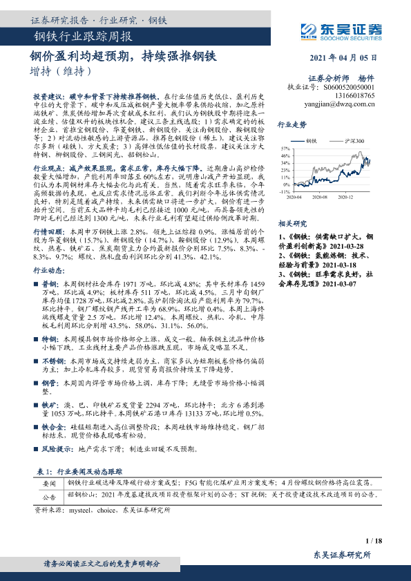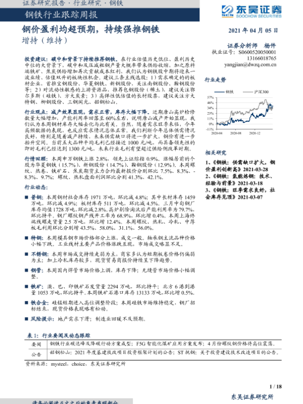 【东吴证券】【20210405】20210405-东吴证券-钢铁行业跟踪周报:钢价盈利均超预期,持续强推钢铁-18页