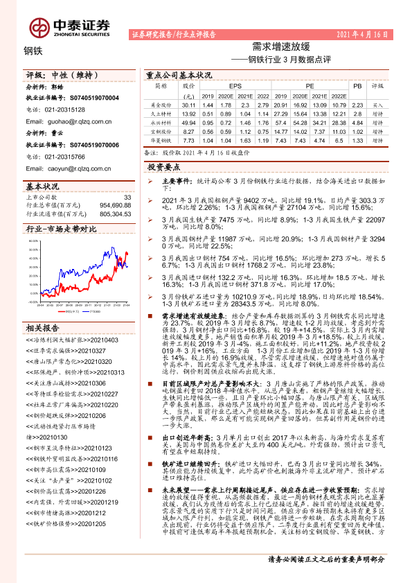 【中泰证券】【20210416】钢铁行业3月数据点评:需求增速放缓-5页