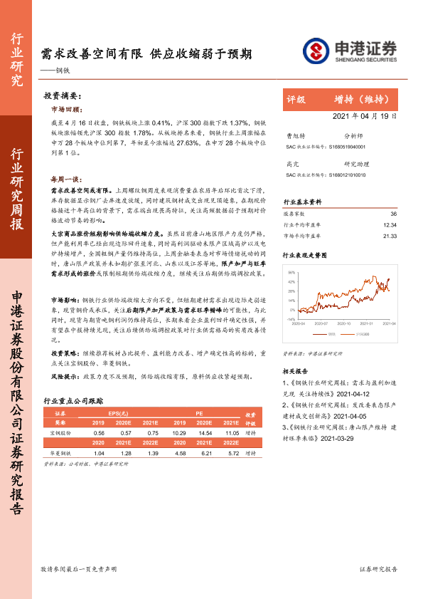 【申港证券】【20210419】20210419-申港证券-钢铁行业研究周报:需求改善空间有限,供应收缩弱于预期-6页