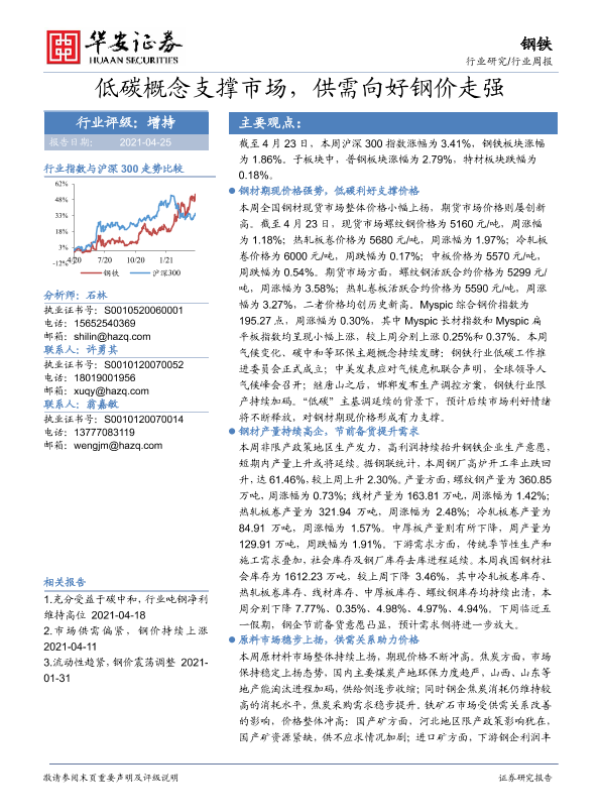 【华安证券】【20210425】20210425-华安证券-钢铁行业周报:低碳概念支撑市场,供需向好钢价走强-23页