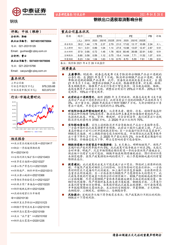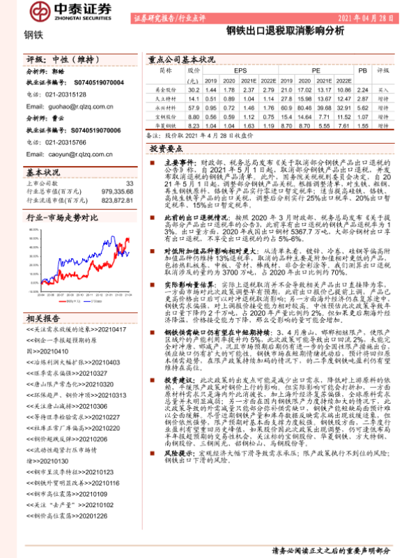 【中泰证券】【20210428】钢铁出口退税取消影响分析-6页