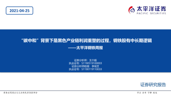 【太平洋证券】【20210425】20210425-太平洋-钢铁周报:“碳中和”背景下是黑色产业链利润重塑的过程,钢铁股有中长期逻辑-51页
