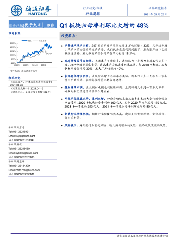【海通证券】【20210502】20210502-海通证券-钢铁行业周报:Q1板块归母净利环比大增约48%-13页