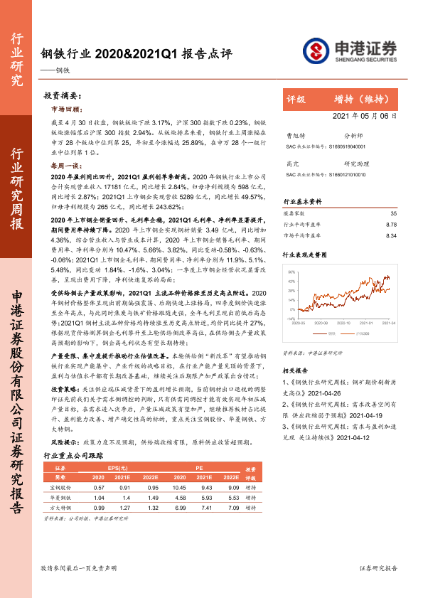 【申港证券】【20210506】20210506-申港证券-钢铁行业研究周报:钢铁行业2020&2021Q1报告点评-7页