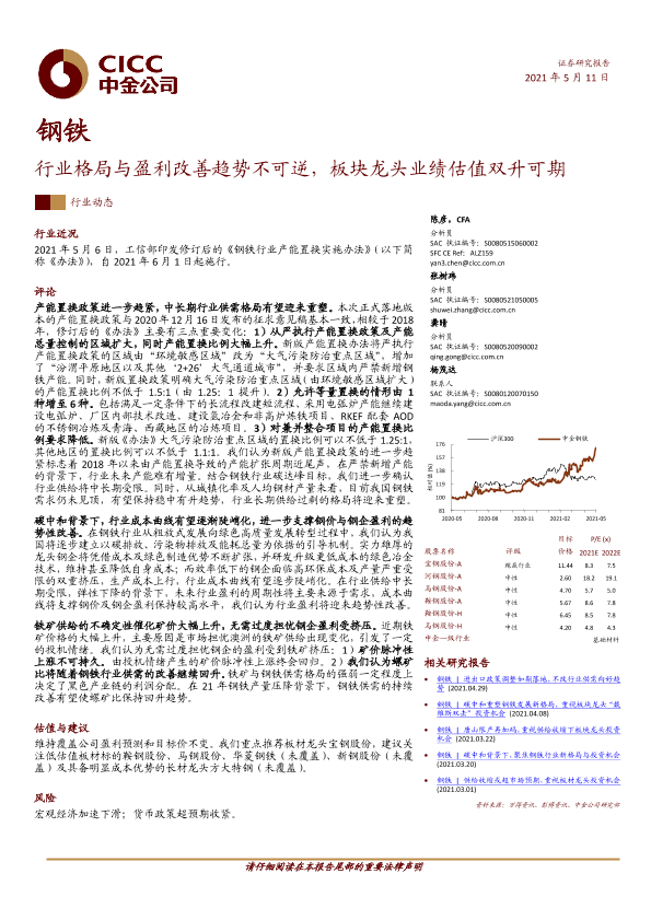 【中金公司】【20210511】钢铁:行业格局与盈利改善趋势不可逆,板块龙头业绩估值双升可期-5页