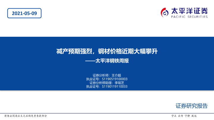 【太平洋证券】【20210509】20210509-太平洋-钢铁周报:减产预期强烈,钢材价格近期大幅攀升-50页