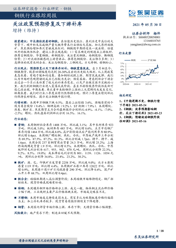 【东吴证券】【20210530】20210530-东吴证券-钢铁行业跟踪周报:关注政策预期修复及下游补库-18页