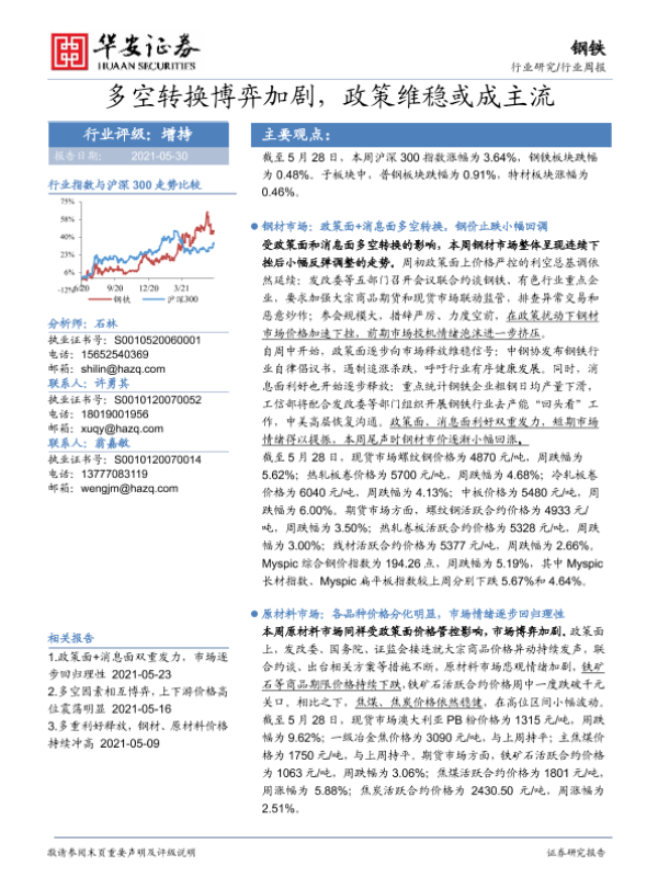 【华安证券】【20210530】20210530-华安证券-钢铁行业周报:多空转换博弈加剧,政策维稳或成主流-25页