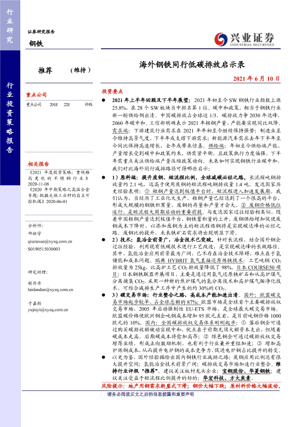 【兴业证券】【20210610】海外钢铁同行低碳排放启示录-25页