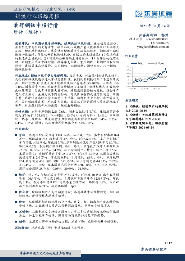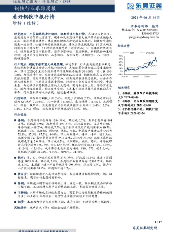 【东吴证券】【20210614】20210614-东吴证券-钢铁行业跟踪周报:看好钢铁中报行情-17页