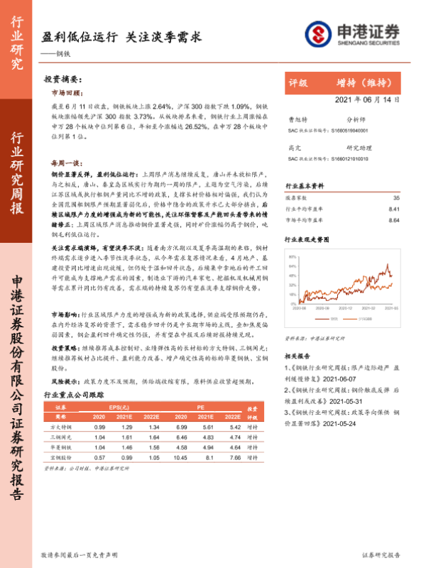 【申港证券】【20210614】20210614-申港证券-钢铁行业研究周报:盈利低位运行 关注淡季需求-6页