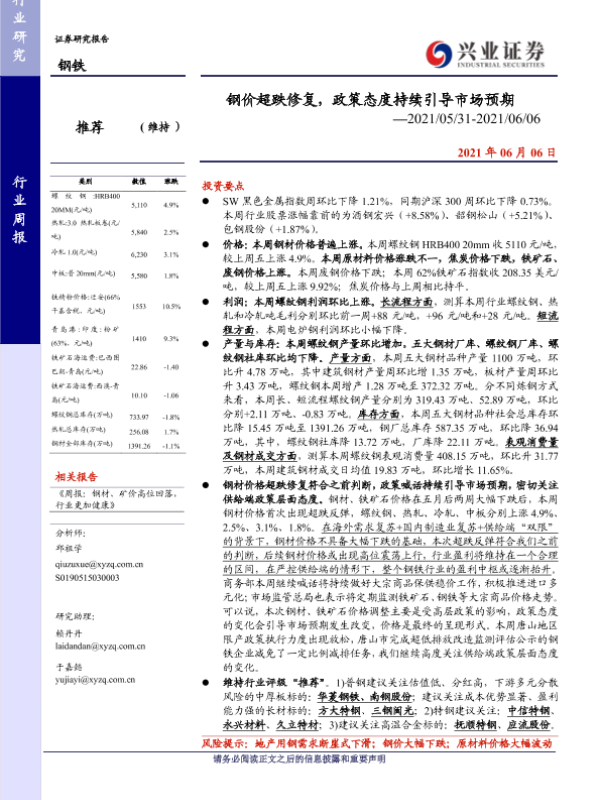 【兴业证券】【20210606】钢价超跌修复,政策态度持续引导市场预期-17页