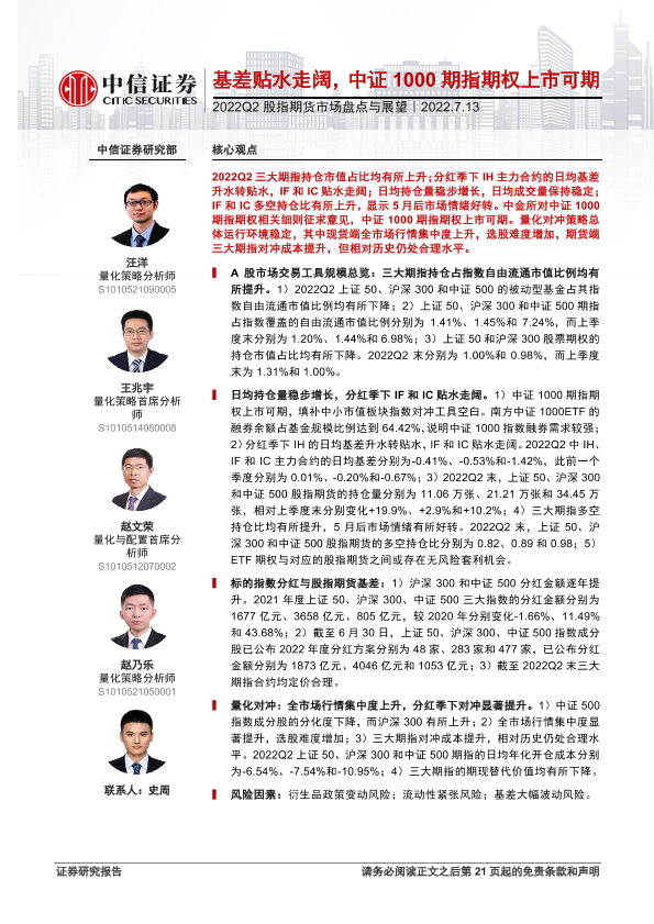 【中信证券】【20220713】2022Q2股指期货市场盘点与展望:基差贴水走阔,中证1000期指期权上市可期-22页