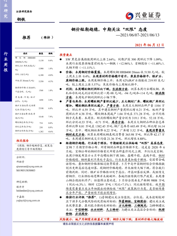 【兴业证券】【20210612】20210612-兴业证券-钢铁行业周报:钢价短期趋稳,中期关注“双限”态度-17页