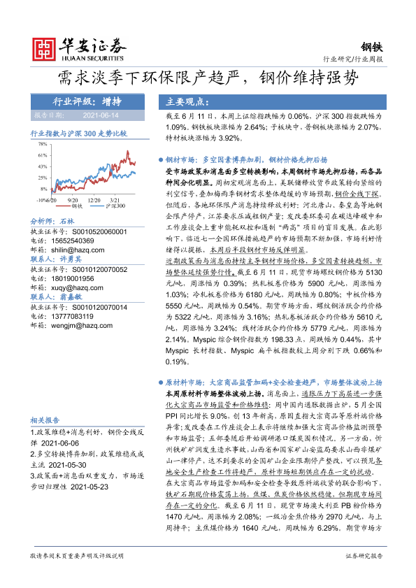 【华安证券】【20210614】需求淡季下环保限产趋严,钢价维持强势-25页