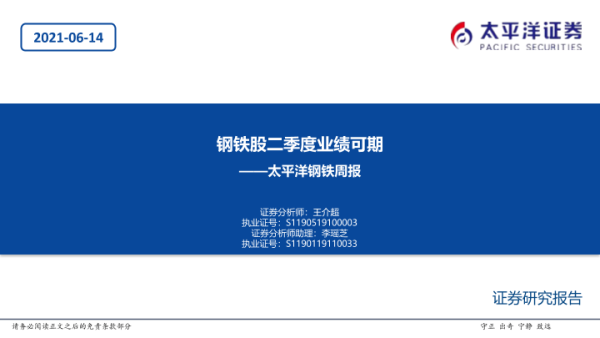 【太平洋证券】【20210614】20210614-太平洋-钢铁周报:钢铁股二季度业绩可期-53页