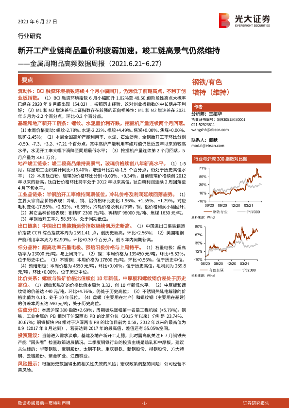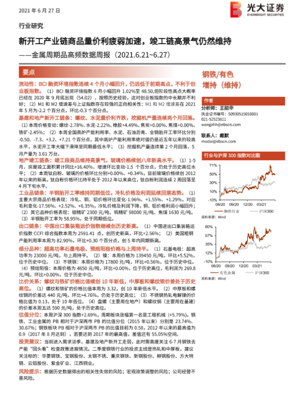 【光大证券】【20210627】20210627-光大证券-金属周期品高频数据周报:新开工产业链商品量价利疲弱加速,竣工链高景气仍然维持-24页