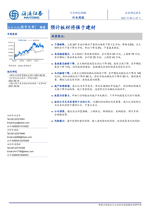 【海通证券】【20210627】20210627-海通证券-钢铁行业周报:预计板材将强于建材-13页