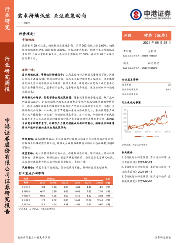 【申港证券】【20210628】20210628-申港证券-钢铁行业研究周报:需求持续低迷 关注政策动向-5页