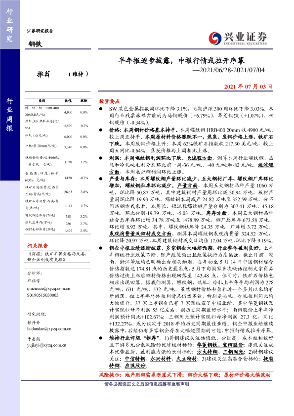 【兴业证券】【20210703】半年报逐步披露,中报行情或拉开序幕-17页