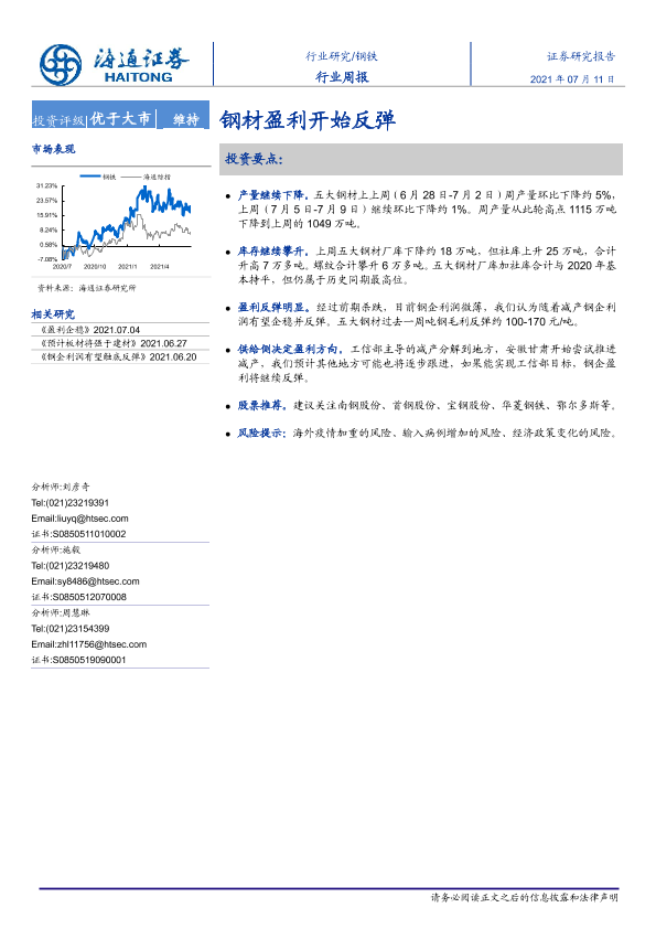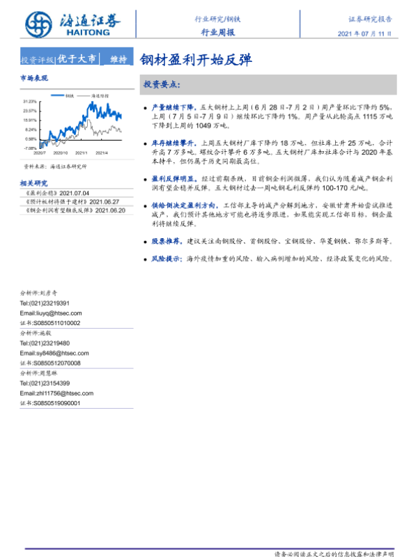 【海通证券】【20210711】20210711-海通证券-钢铁行业周报:钢材盈利开始反弹-13页