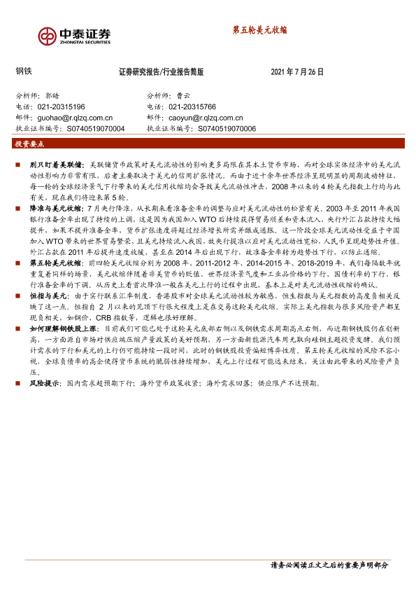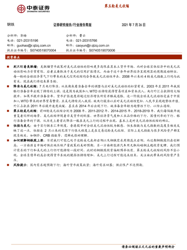 【中泰证券】【20210726】钢铁:第五轮美元收缩-6页
