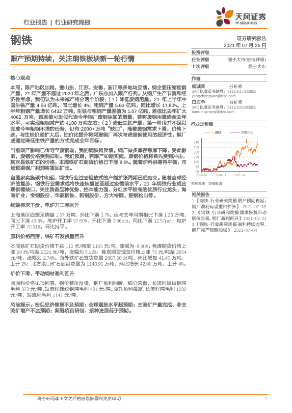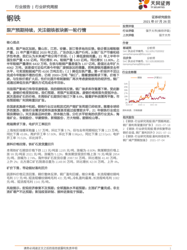 【天风证券】【20210726】20210726-天风证券-钢铁行业研究周报:限产预期持续,关注钢铁板块新一轮行情-13页