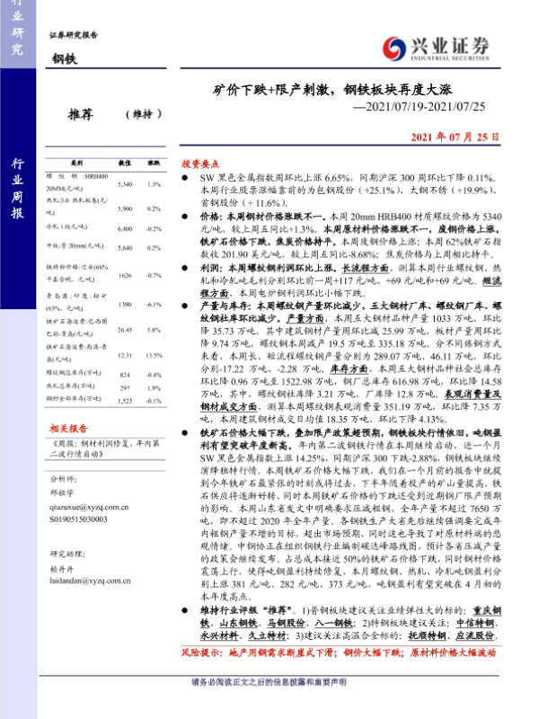 【兴业证券】【20210725】矿价下跌+限产刺激,钢铁板块再度大涨-17页