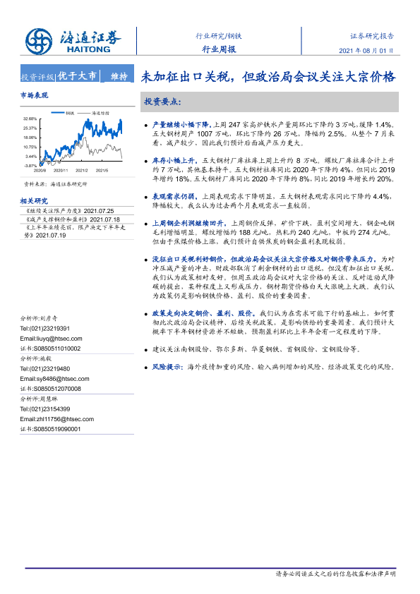 【海通证券】【20210801】20210801-海通证券-钢铁行业周报:未加征出口关税,但政治局会议关注大宗价格-13页