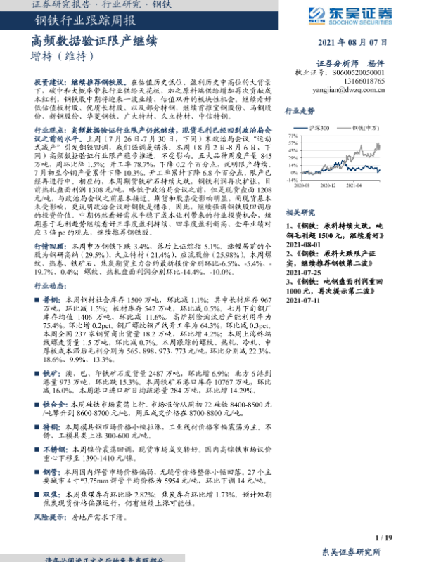 【东吴证券】【20210807】20210807-东吴证券-钢铁行业跟踪周报:高频数据验证限产继续-19页