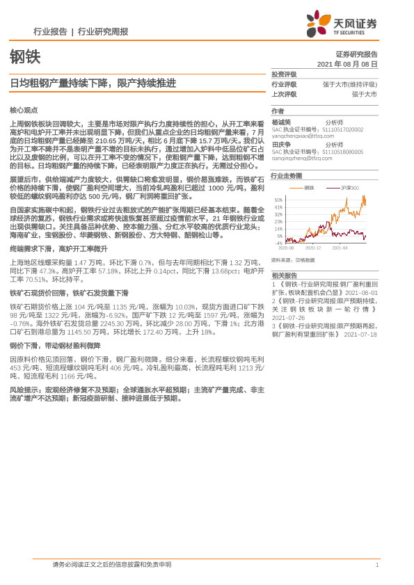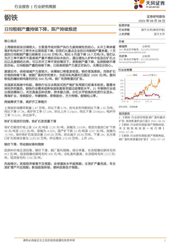 【天风证券】【20210808】20210808-天风证券-钢铁行业研究周报:日均粗钢产量持续下降,限产持续推进-13页