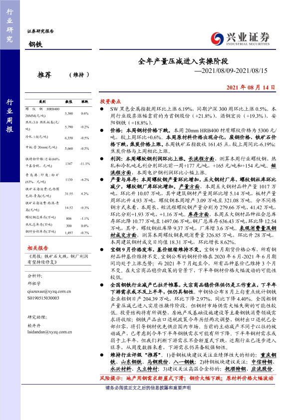 【兴业证券】【20210814】20210814-兴业证券-钢铁行业周报:全年产量压减进入实操阶段-17页