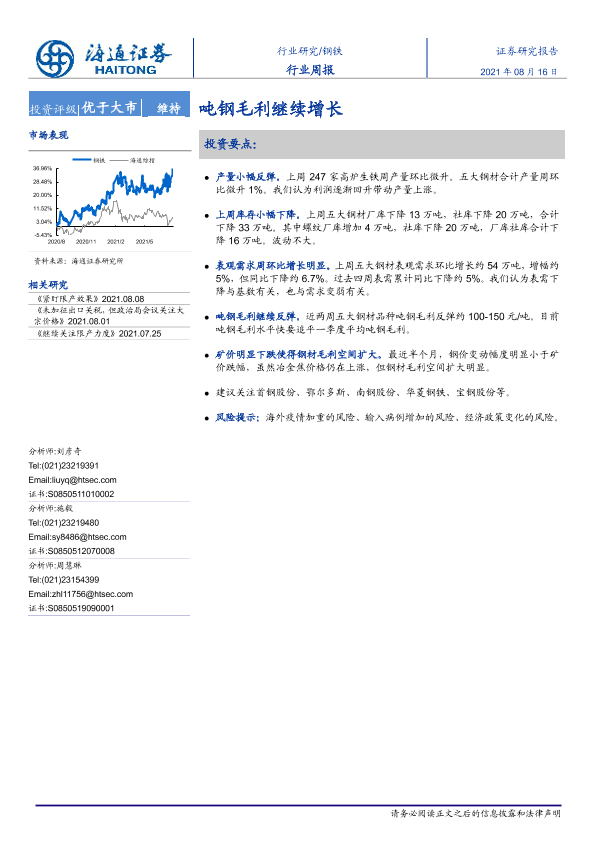 【海通证券】【20210816】20210816-海通证券-钢铁行业周报:吨钢毛利继续增长-13页
