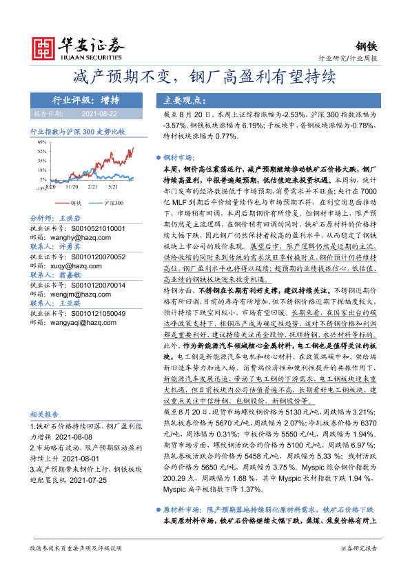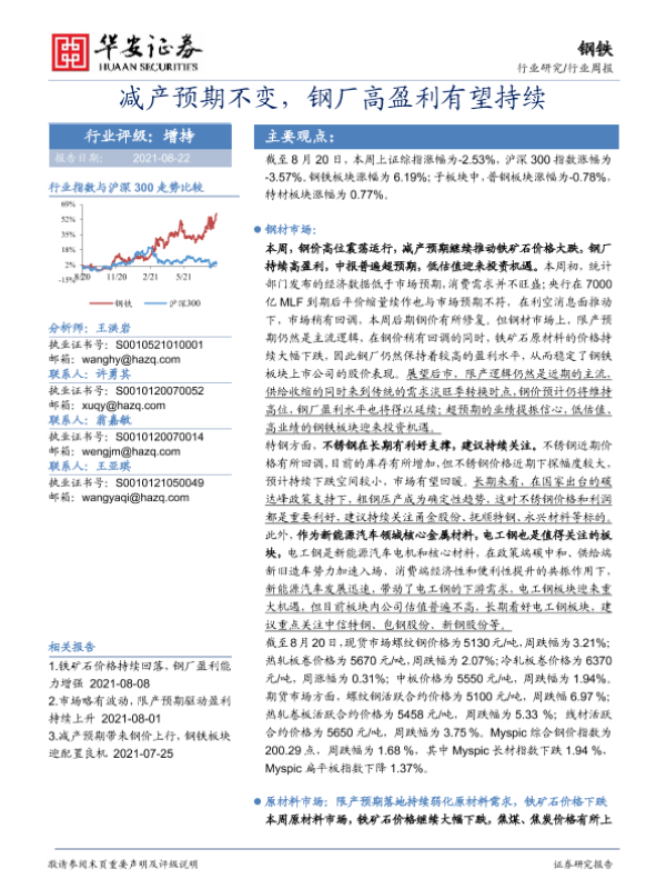 【华安证券】【20210822】20210822-华安证券-钢铁行业周报:减产预期不变,钢厂高盈利有望持续-24页
