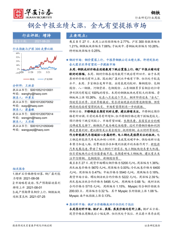 【华安证券】【20210829】20210829-华安证券-钢铁行业周报:钢企中报业绩大涨,金九有望提振市场-24页